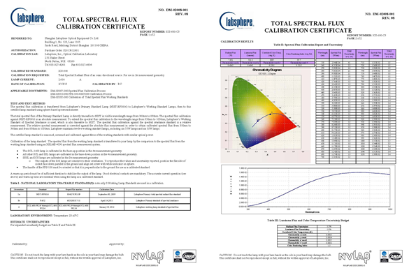 圖4、Labsphere標準燈校準證書