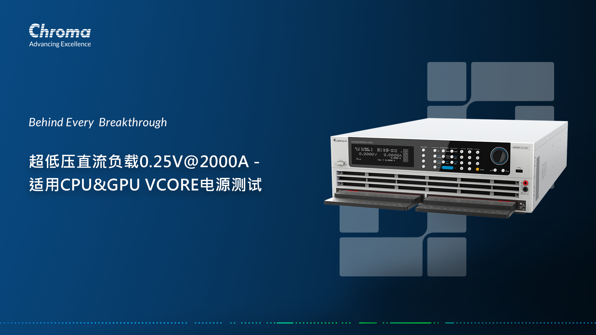 Chroma推出超低壓直流電子負載,針對CPU和GPU的電源測試而設計。可操作的電壓范圍為0-20V,額定功率為2kW,電流規(guī)格提供1,000A和2,000A兩種。因為CPU及GPU電源的輸出電壓很低,為改善無法順利拉載的問題,Chroma 63202A-20-2000電子負載獨特的設計,可以在電壓低至0.25V的條件下,實現(xiàn)2,000A的拉載能力,且即便在低于工作電壓0.25V至0V區(qū)間,仍能持續(xù)拉載,確保電子負載可以仿真真實的工作條件,此一能力對測試和驗證GPU電源尤為重要。